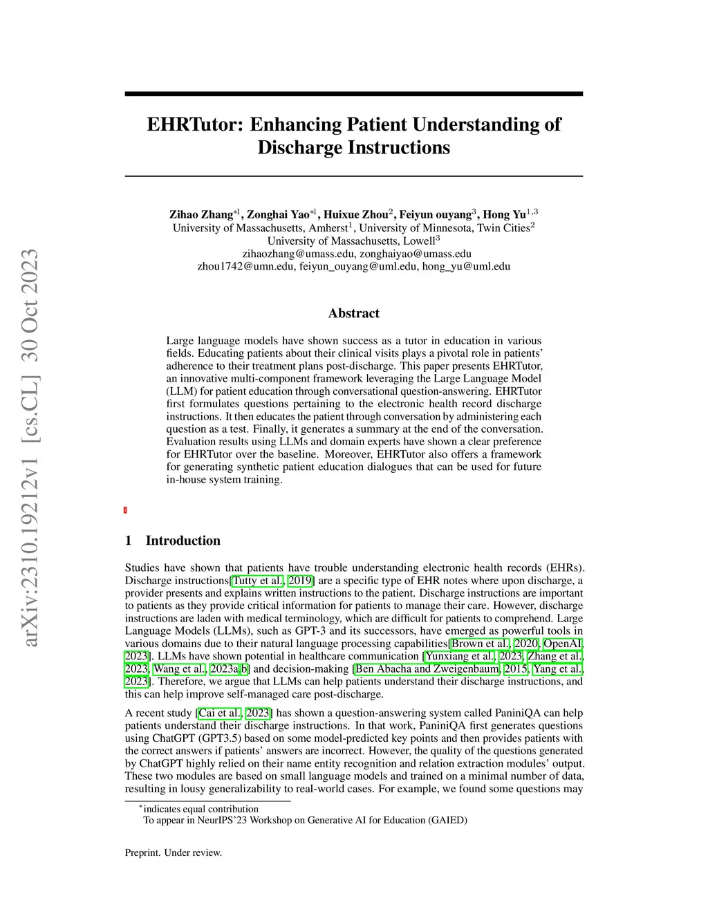 EHRTutor: Enhancing Patient Understanding of Discharge Instructions