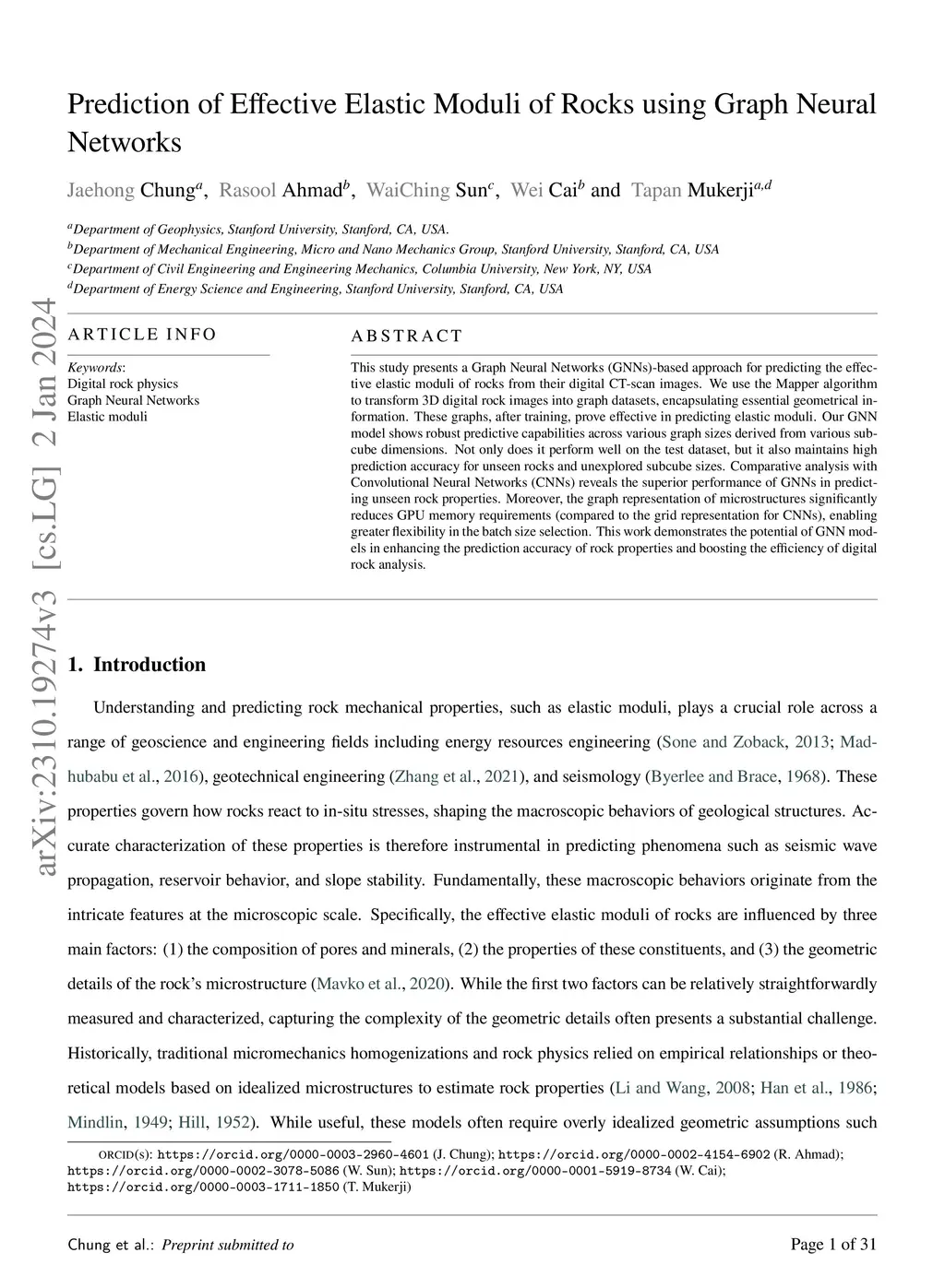 Prediction of Effective Elastic Moduli of Rocks using Graph Neural