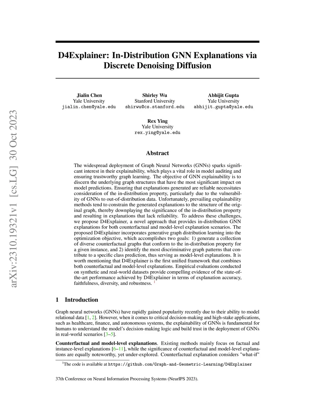 D4Explainer: In-Distribution GNN Explanations via Discrete Denoising