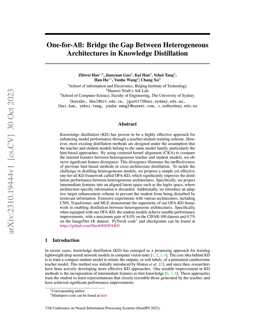 One-for-All: Bridge the Gap Between Heterogeneous Architectures in
