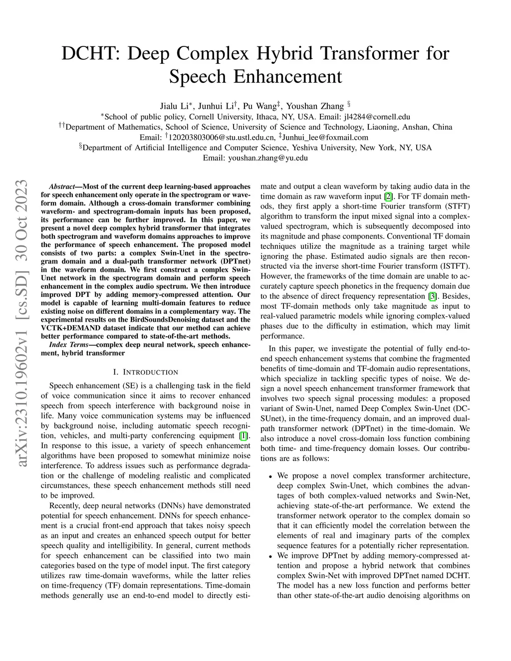 DCHT: Deep Complex Hybrid Transformer for Speech Enhancement