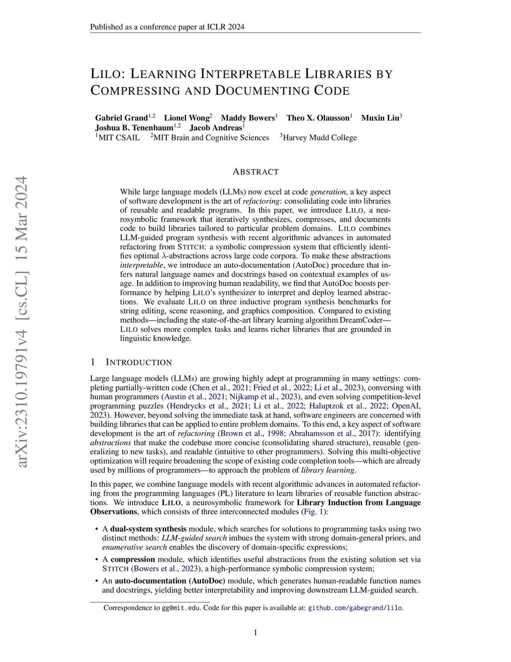 LILO: Learning Interpretable Libraries by Compressing and Documenting Code