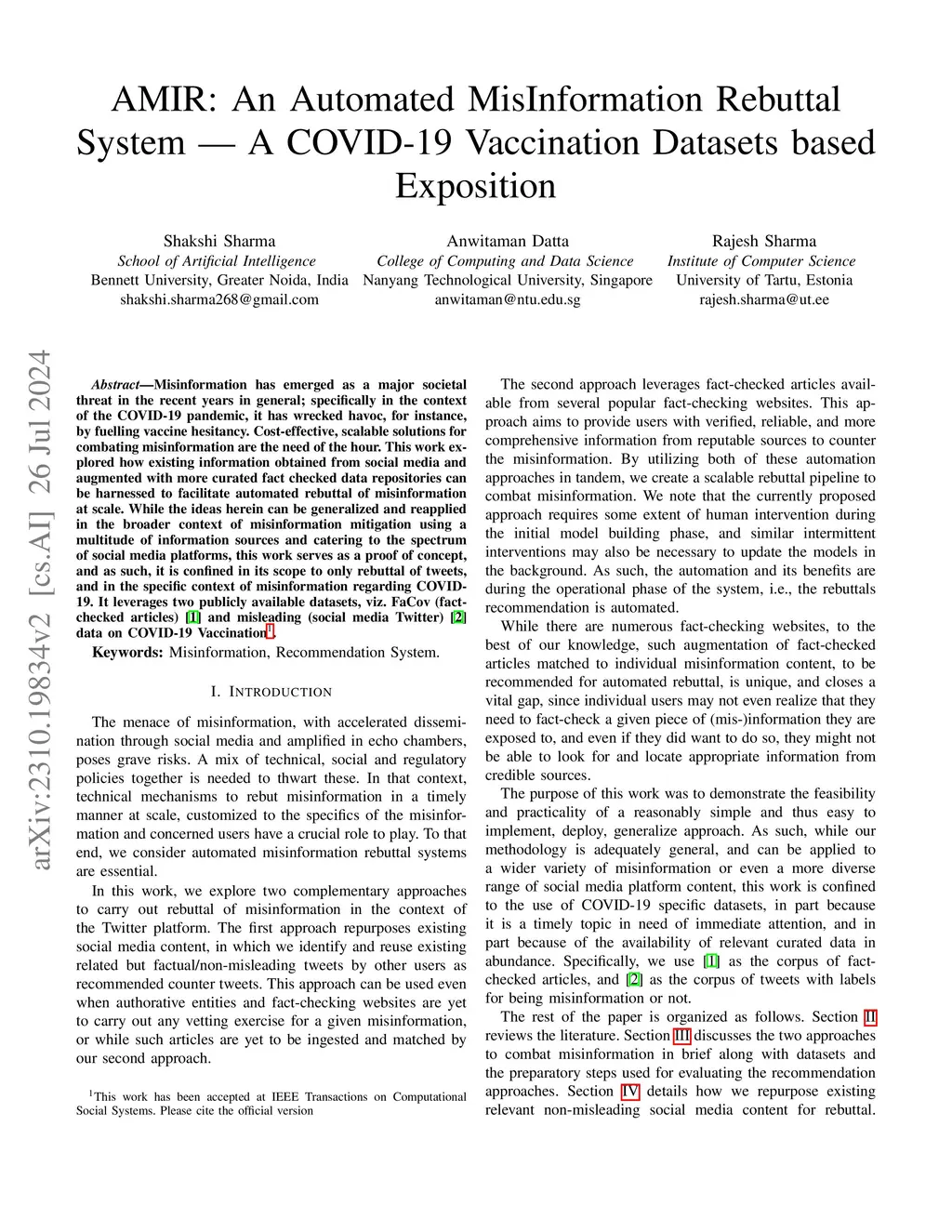 AMIR: Automated MisInformation Rebuttal -- A COVID-19 Vaccination