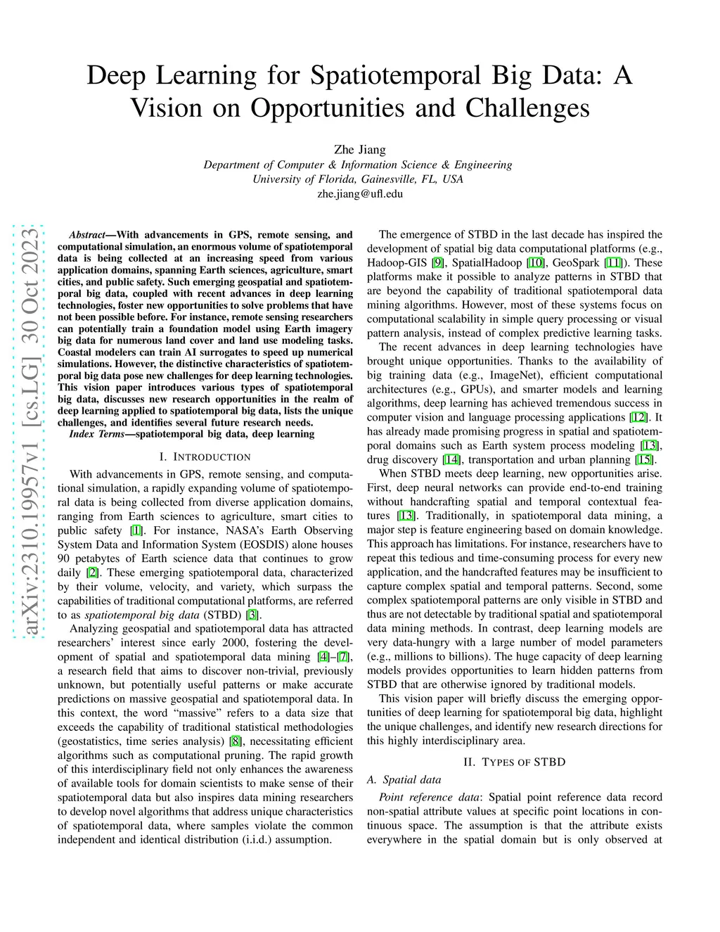 With advancements in GPS, remote sensing, and computational simulation, an enormous volume of spatiotemporal data is being collected at an increasing speed from various application domains, spanning Earth sciences, agriculture, smart cities, and public safety. Such emerging geospatial and spatiotemporal big data, coupled with recent advances in deep learning technologies, foster new opportunities to solve problems that have not been possible before. For instance, remote sensing researchers can potentially train a foundation model using Earth imagery big data for numerous land cover and land use modeling tasks. Coastal modelers can train AI surrogates to speed up numerical simulations. However, the distinctive characteristics of spatiotemporal big data pose new challenges for deep learning technologies. This vision paper introduces various types of spatiotemporal big data, discusses new research opportunities in the realm of deep learning applied to spatiotemporal big data, lists the unique challenges, and identifies several future research needs.