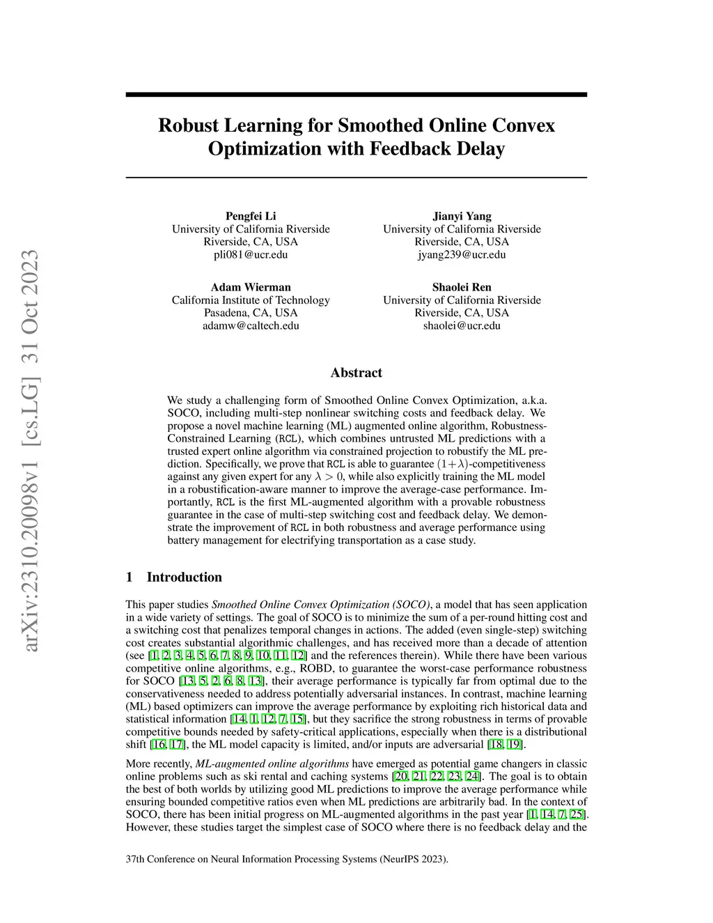 We study a challenging form of Smoothed Online Convex Optimization, a.k.a. SOCO, including multi-step nonlinear switching costs and feedback delay. We propose a novel machine learning (ML) augmented online algorithm, Robustness-Constrained Learning (RCL), which combines untrusted ML predictions with a trusted expert online algorithm via constrained projection to robustify the ML prediction. Specifically,we prove that RCL is able to guarantee-competitiveness against any given expert for any, while also explicitly training the ML model in a robustification-aware manner to improve the average-case performance. Importantly,RCL is the first ML-augmented algorithm with a provable robustness guarantee in the case of multi-step switching cost and feedback delay.We demonstrate the improvement of RCL in both robustness and average performance using battery management for electrifying transportationas a case study.