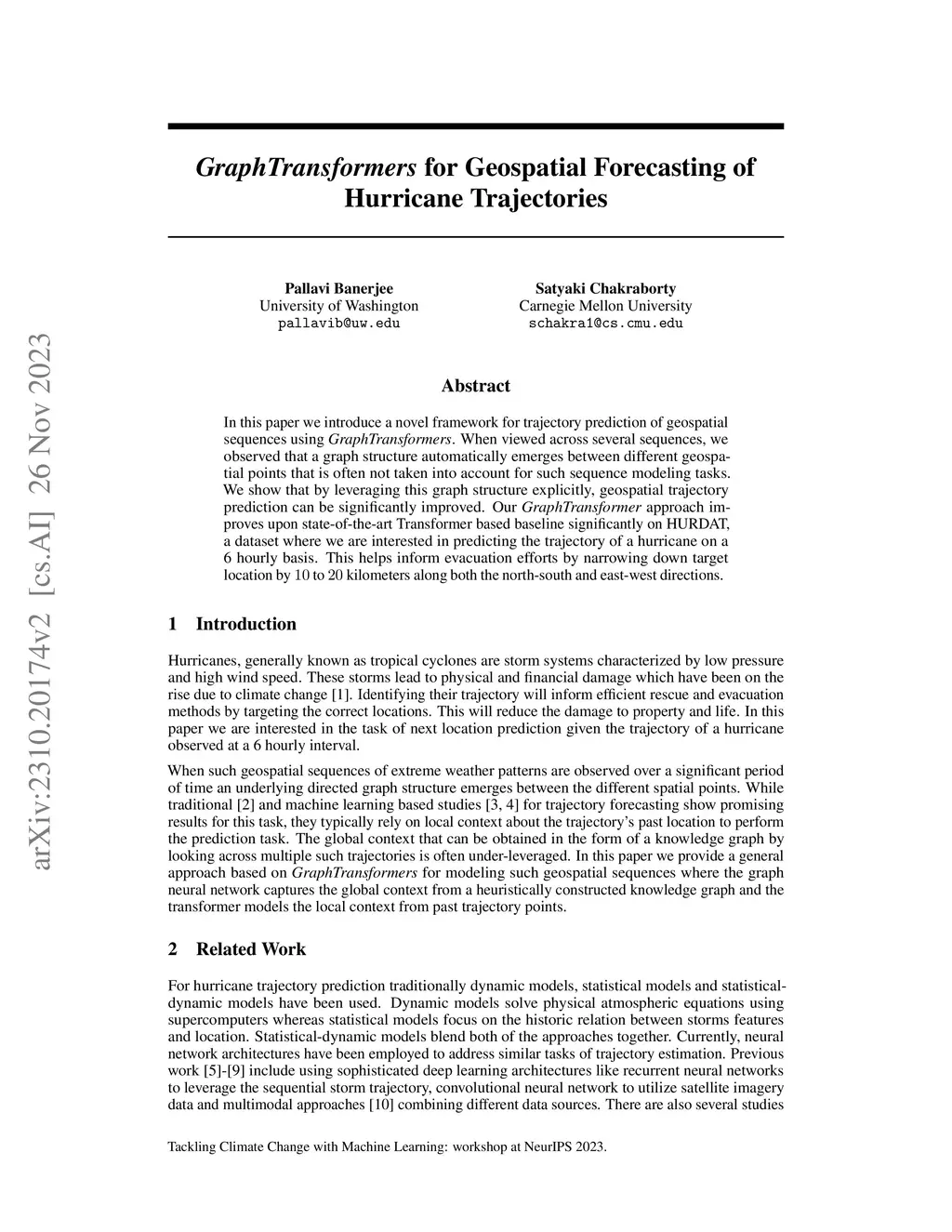 GraphTransformers for Geospatial Forecasting of Hurricane Trajectories