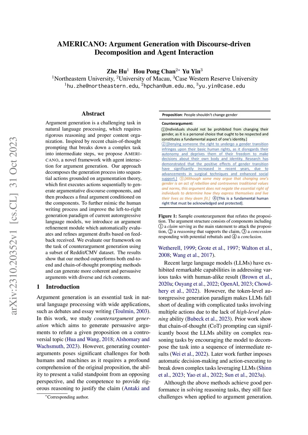 AMERICANO: Argument Generation with Discourse-driven Decomposition and