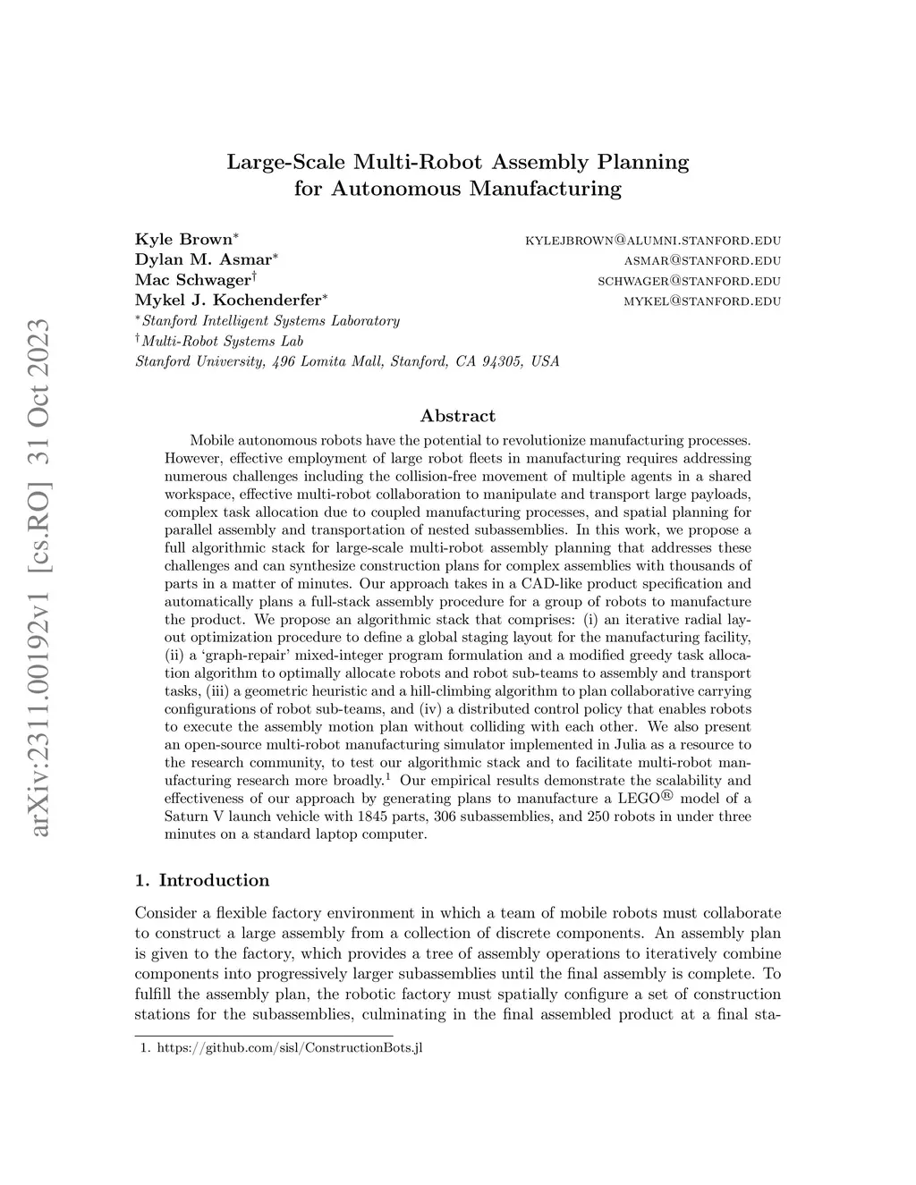 Large-Scale Multi-Robot Assembly Planning for Autonomous Manufacturing