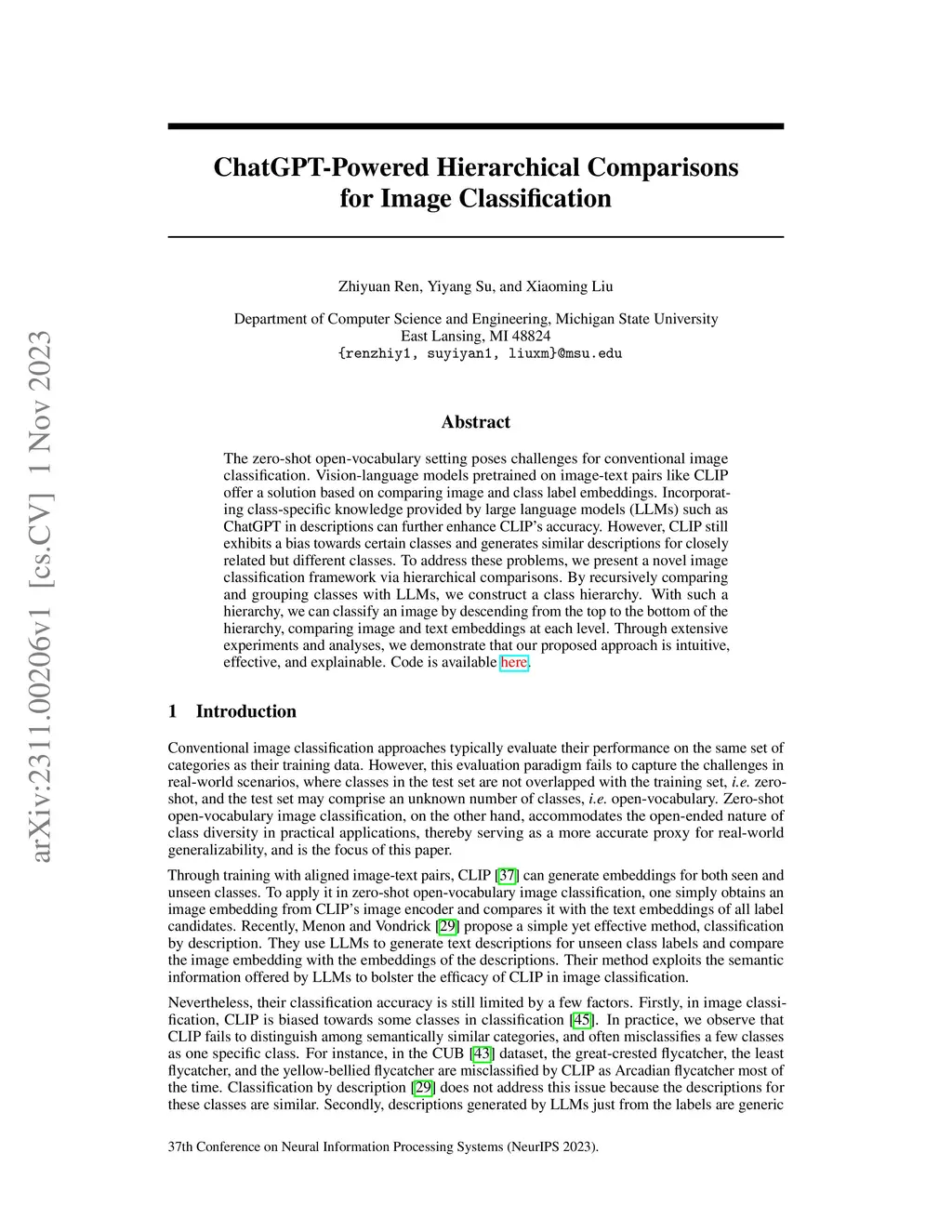 ChatGPT-Powered Hierarchical Comparisons for Image Classification