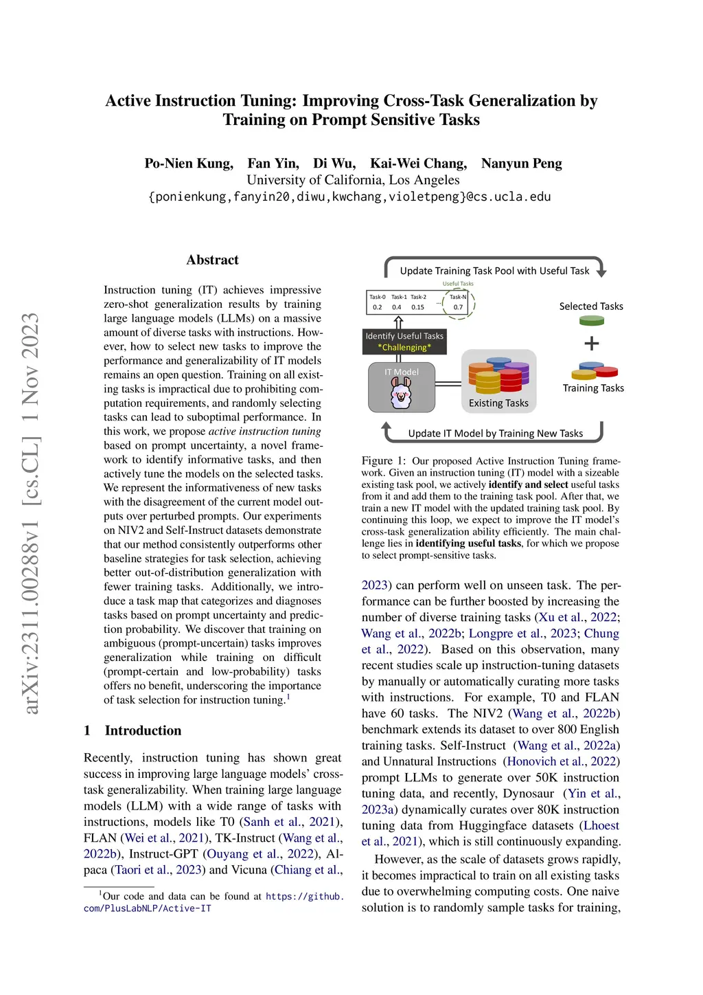 Active Instruction Tuning: Improving Cross-Task Generalization by