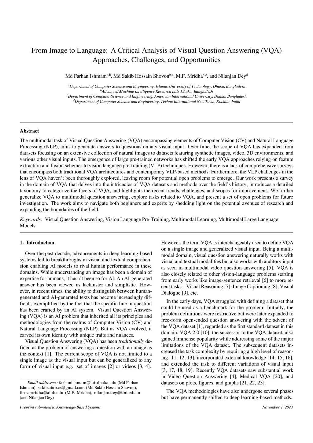 (VQA) Approaches, Challenges, and Opportunities