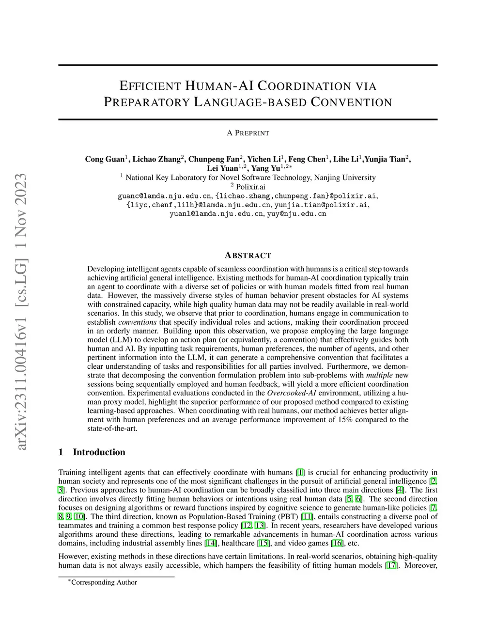 Efficient Human-AI Coordination via Preparatory Language-based