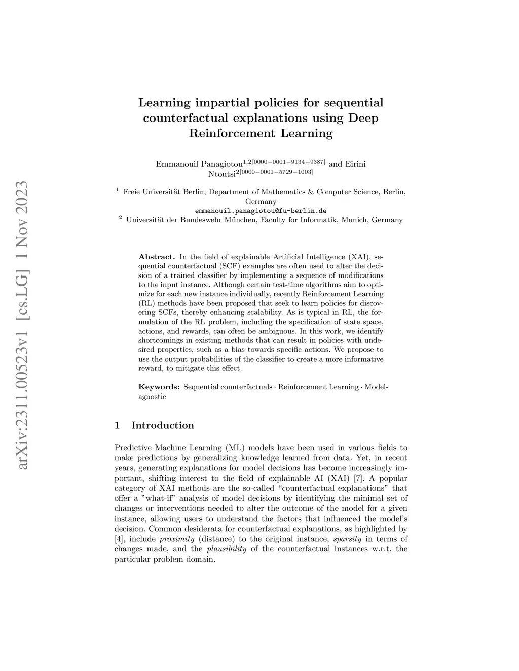 Learning impartial policies for sequential counterfactual explanations