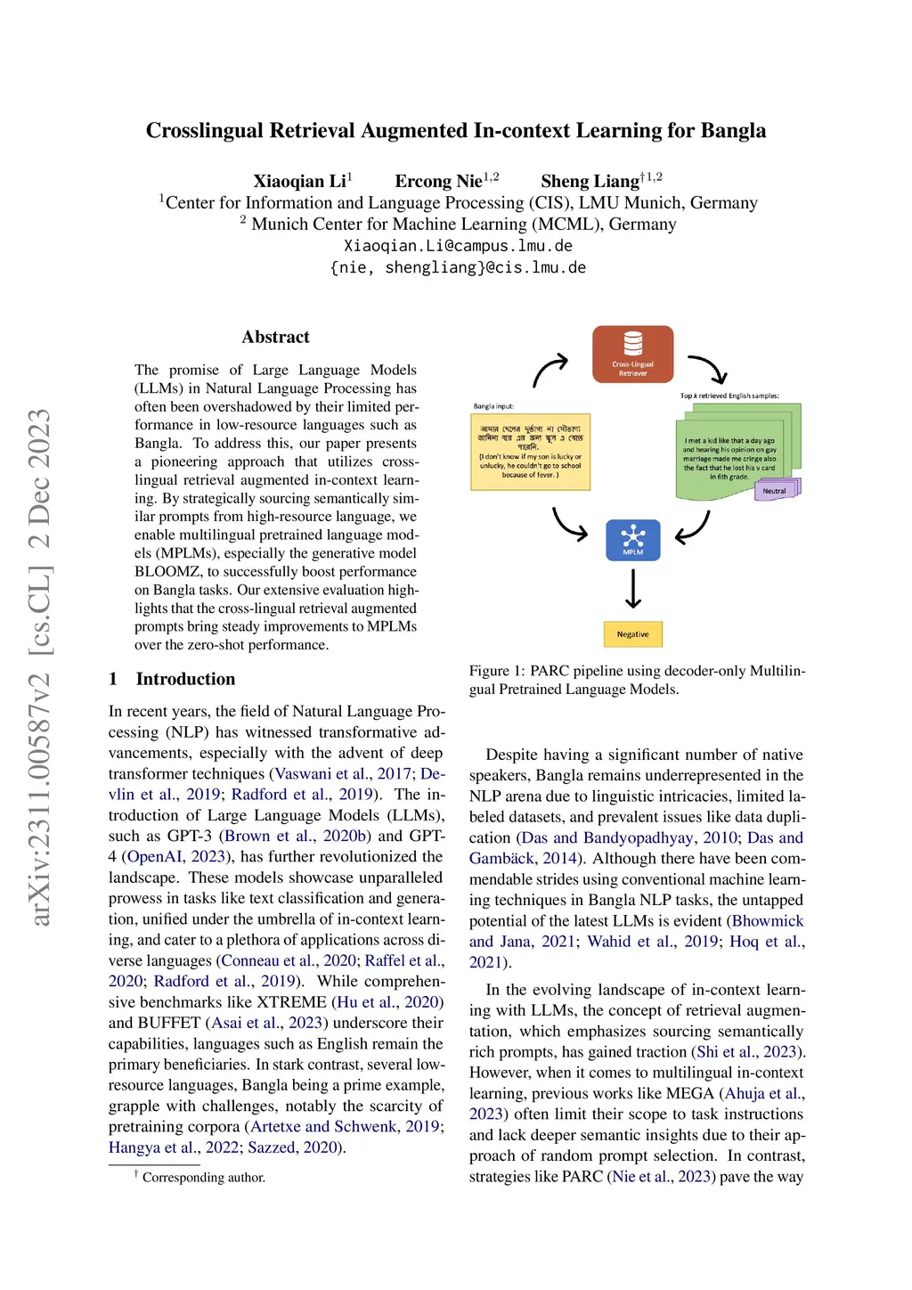 Crosslingual Retrieval Augmented In-context Learning for Bangla