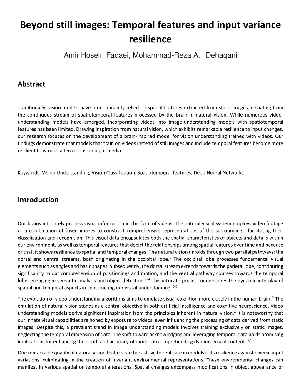 Beyond still images: Temporal features and input variance resilience