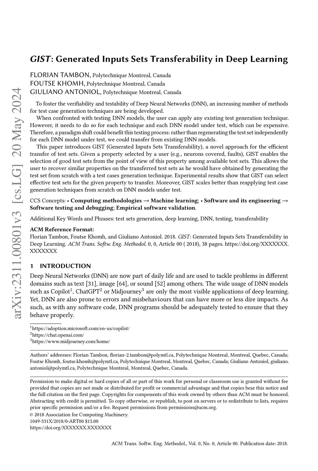 GIST: Generated Inputs Sets Transferability in Deep Learning