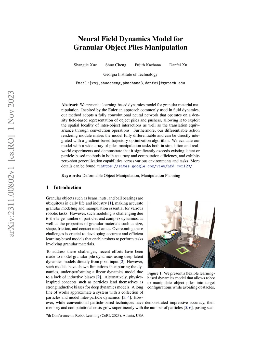 Neural Field Dynamics Model for Granular Object Piles Manipulation