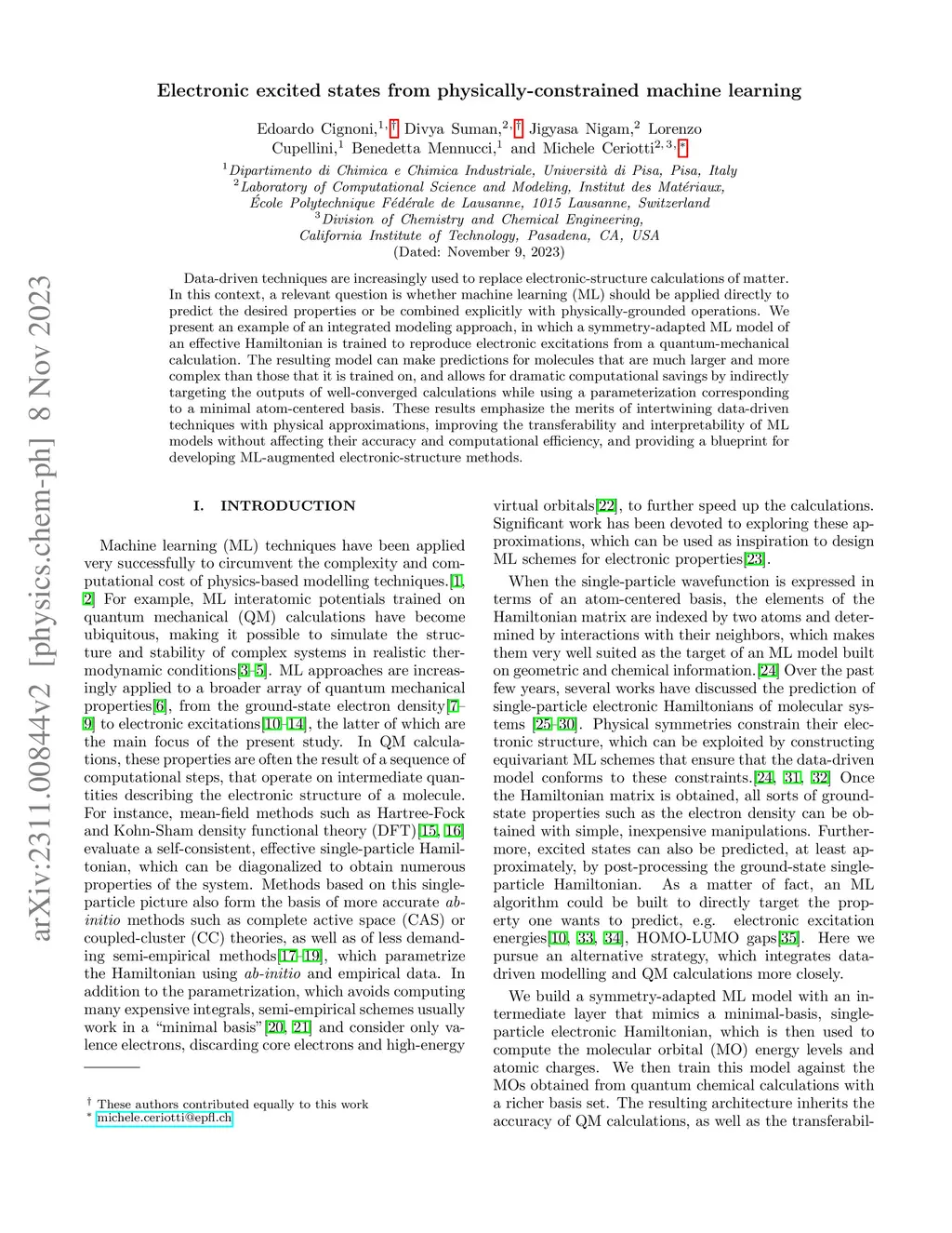 Electronic excited states from physically-constrained machine learning