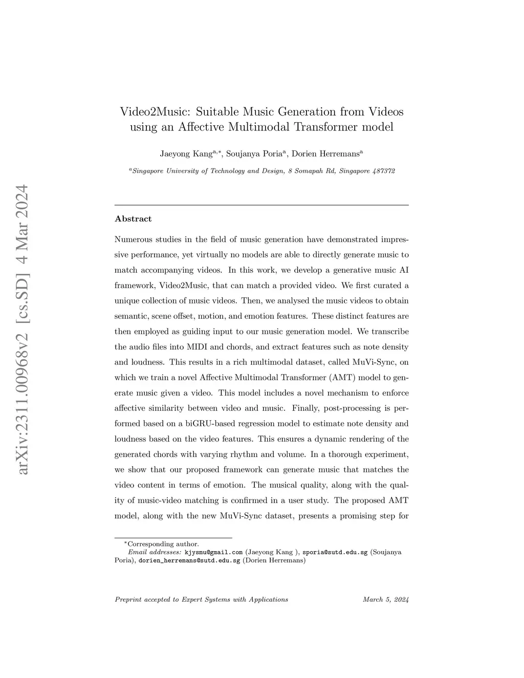 Video2Music: Suitable Music Generation from Videos using an Affective