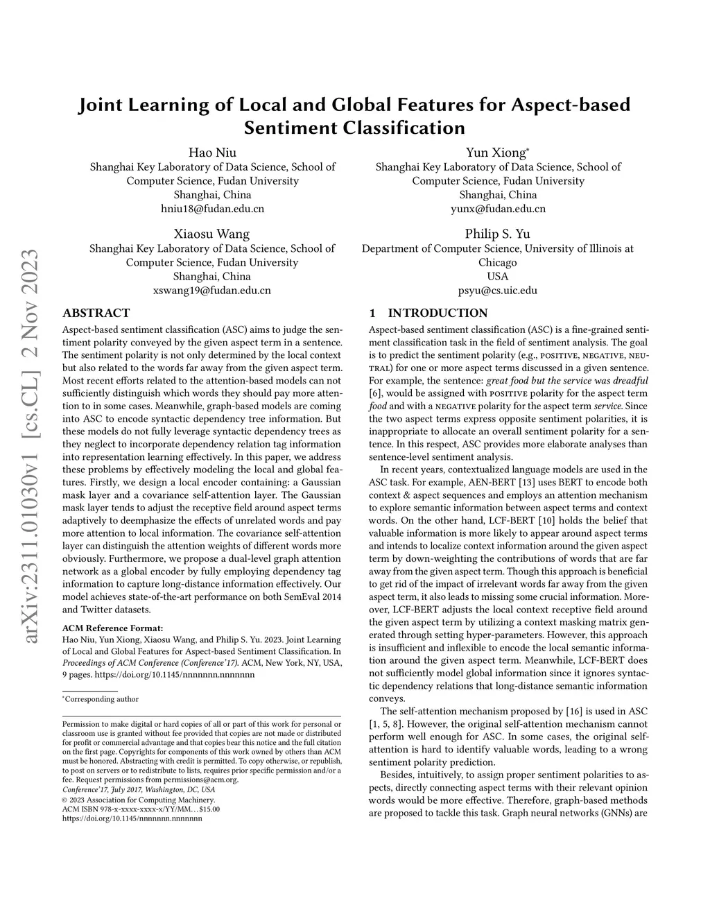 Joint Learning of Local and Global Features for Aspect-based Sentiment Classification