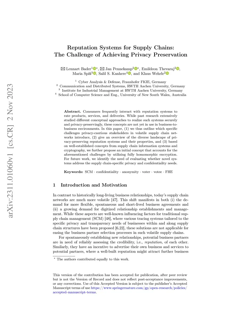 Reputation Systems for Supply Chains: The Challenge of Achieving Privacy
