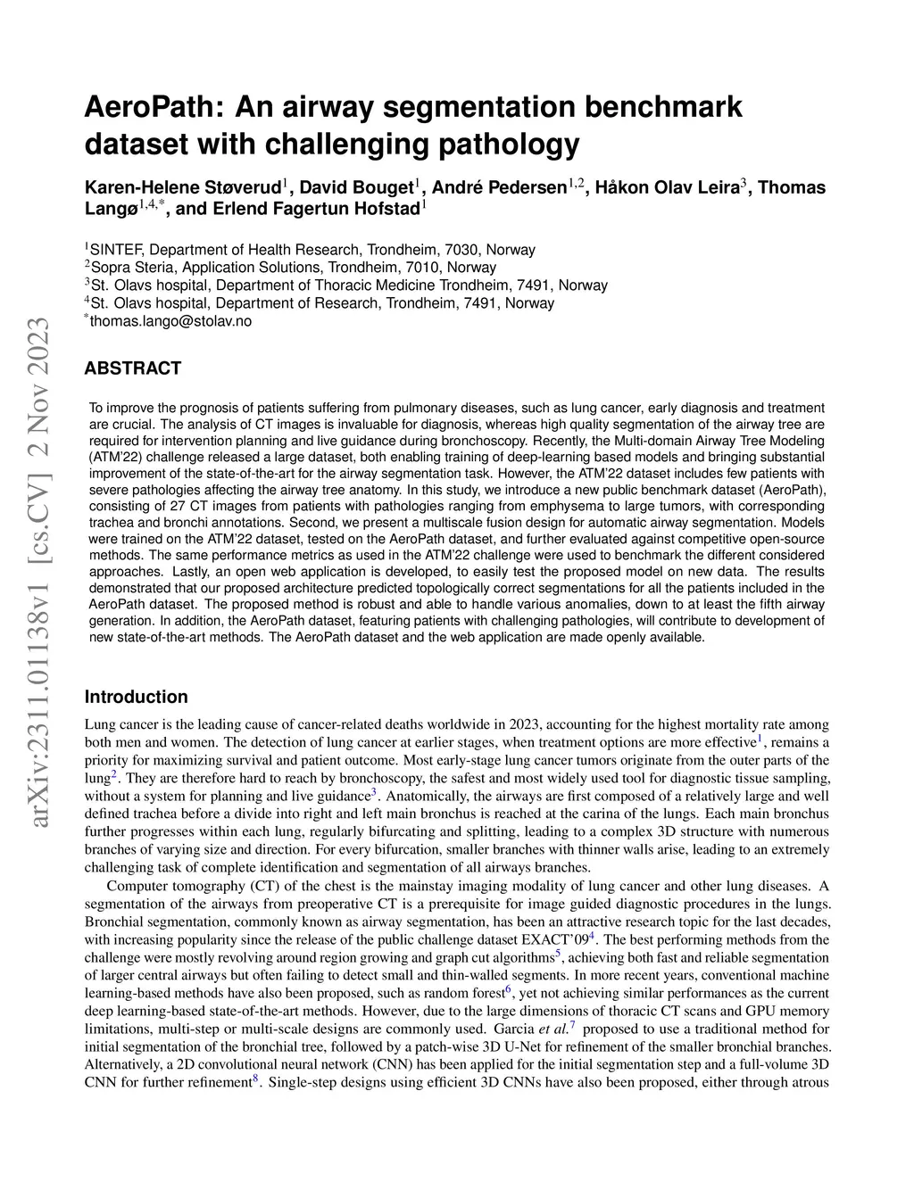 AeroPath: An airway segmentation benchmark dataset with challenging