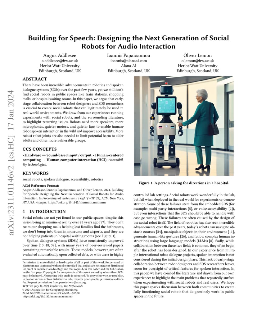 There have been incredible advancements in robotics and spoken dialogue systems (SDSs) over the past few years, yet we still don't find social robots in public spaces like train stations, shopping malls, or hospital waiting rooms. In this paper, we argue that early-stage collaboration between robot designers and SDS researchers is crucial to create social robots that can legitimately be used in real-world environments. We draw from our experiences running experiments with social robots, and the surrounding literature, to highlight recurring issues. Robots need more speakers, more microphones, quieter motors, and quieter fans to enable human-robot spoken interaction in the wild and improve accessibility. More robust robot joints are also needed to limit potential harm to older adults and other more vulnerable groups.