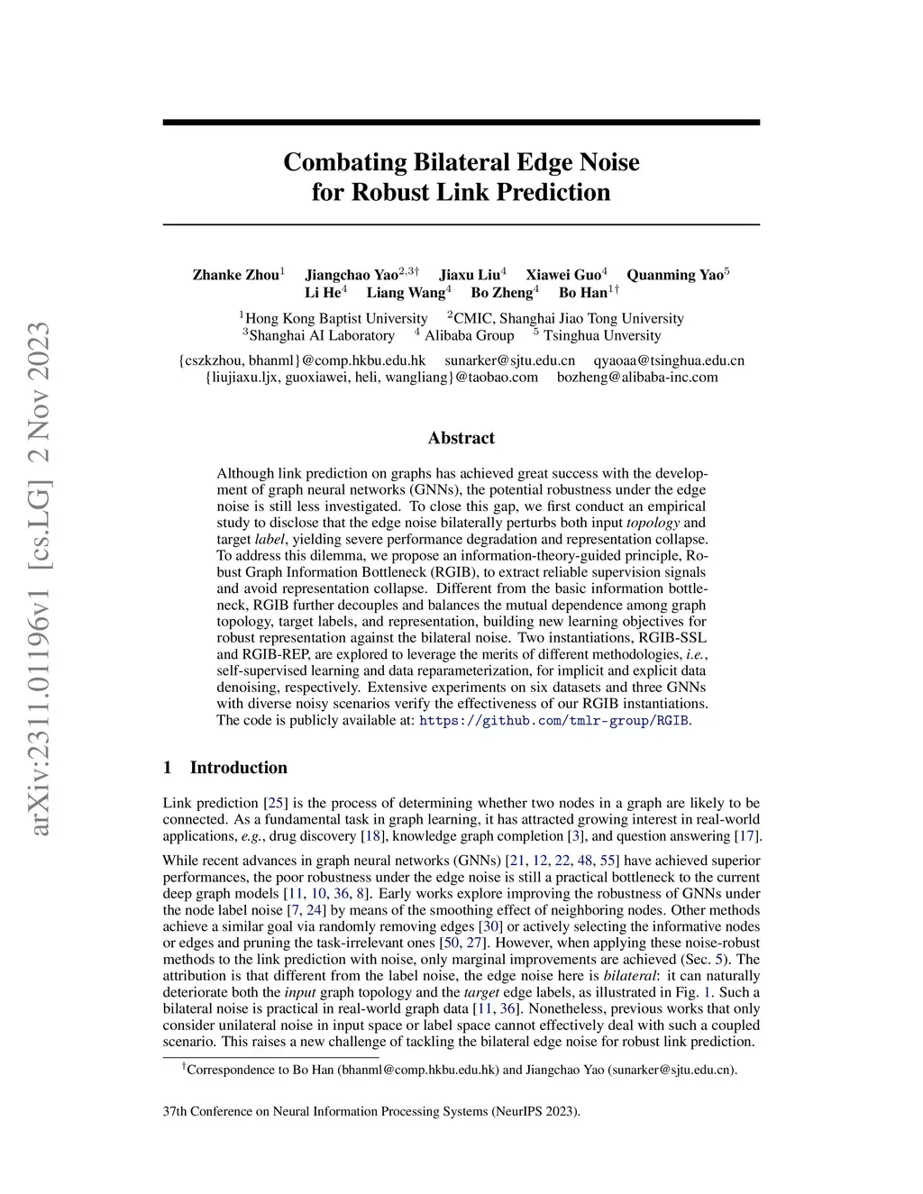 Combating Bilateral Edge Noise for Robust Link Prediction