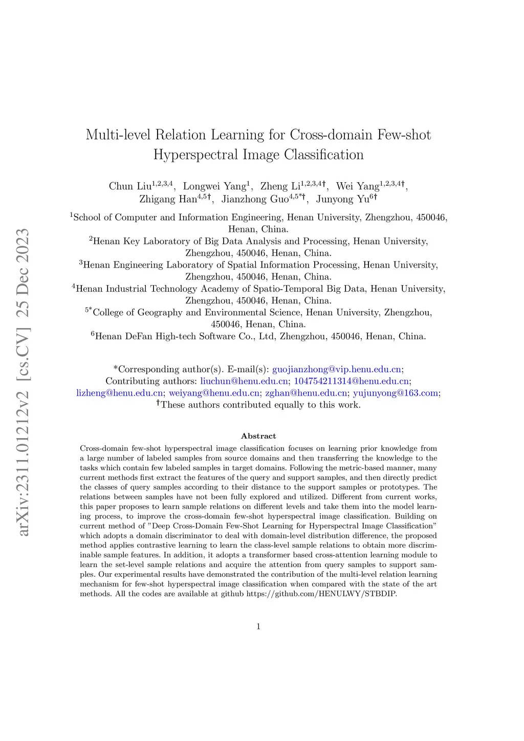 Multi-level Relation Learning for Cross-domain Few-shot Hyperspectral