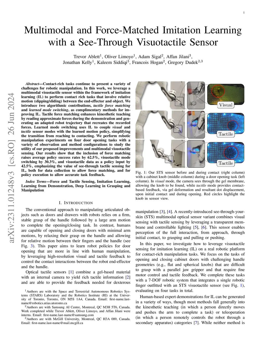 Multimodal and Force-Matched Imitation Learning with a See-Through Visuotactile Sensor