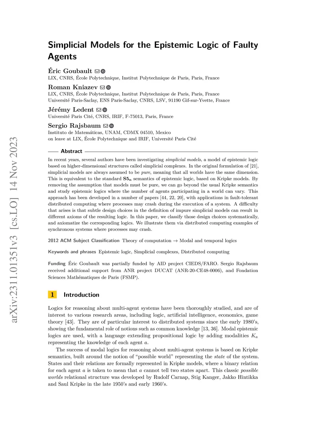Simplicial Models for the Epistemic Logic of Faulty Agents