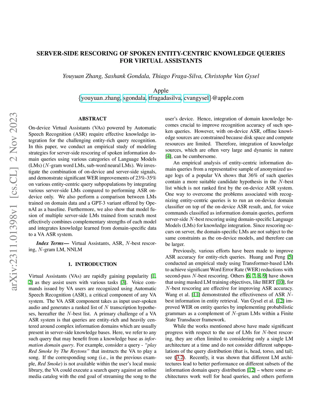 Server-side Rescoring of Spoken Entity-centric Knowledge Queries for