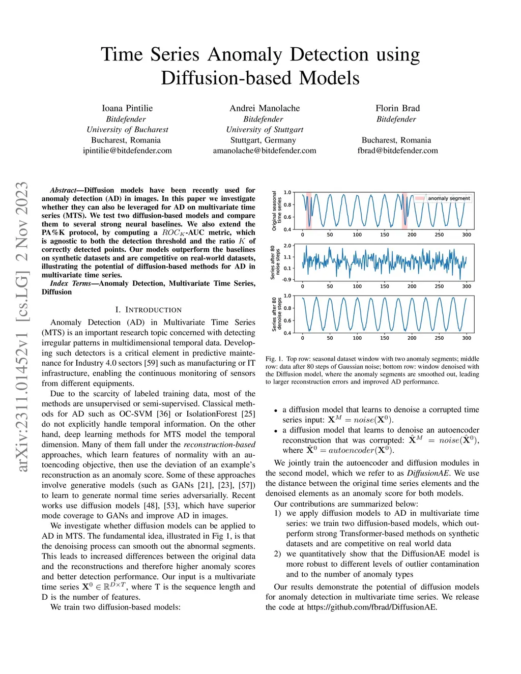 Time Series Anomaly Detection using Diffusion-based Models