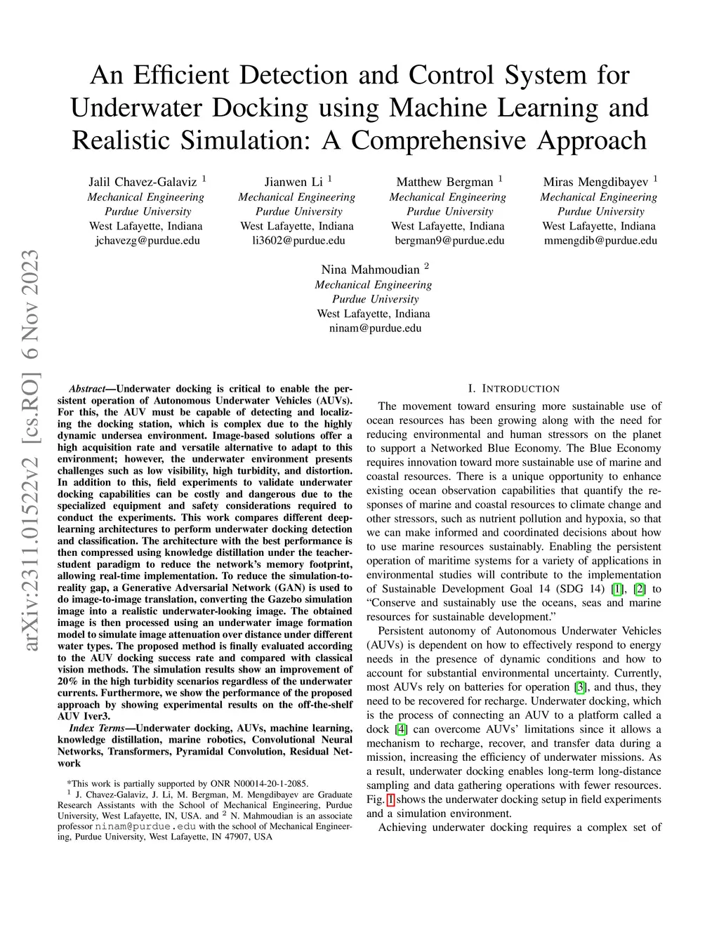 An Efficient Detection and Control System for Underwater Docking using
