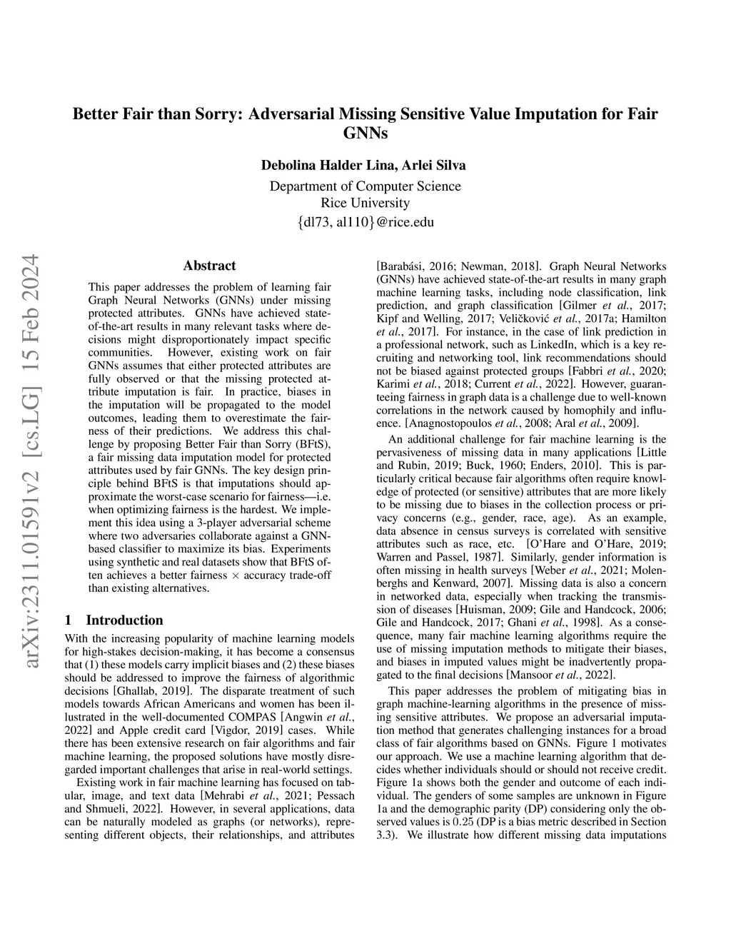 Graph Neural Networks (GNNs) have achieved state-of-the-art results in many relevant tasks where decisions might disproportionately impact specific communities. However, existing work on fair GNNs often assumes that either sensitive attributes are fully observed or they are missing completely at random. We show that an adversarial missingness process can inadvertently disguise a fair model through the imputation, leading the model to overestimate the fairness of its predictions. We address this challenge by proposing Better Fair than Sorry (BFtS), a fair missing data imputation model for sensitive attributes. The key principle behind BFtS is that imputations should approximate the worst-case scenario for fairness -- i.e. when optimizing fairness is the hardest. We implement this idea using a 3-player adversarial scheme where two adversaries collaborate against a GNN classifier, and the classifier minimizes the maximum bias. Experiments using synthetic and real datasets show that BFtS often achieves a better fairness x accuracy trade-off than existing alternatives under an adversarial missingness process.