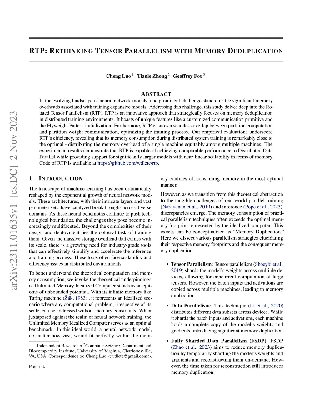 RTP: Rethinking Tensor Parallelism with Memory Deduplication