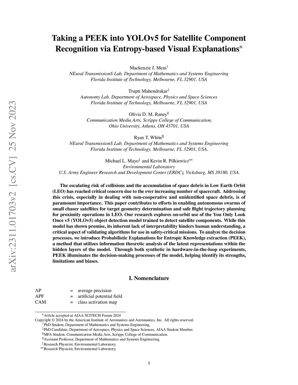 Taking a PEEK into YOLOv5 for Satellite Component Recognition via