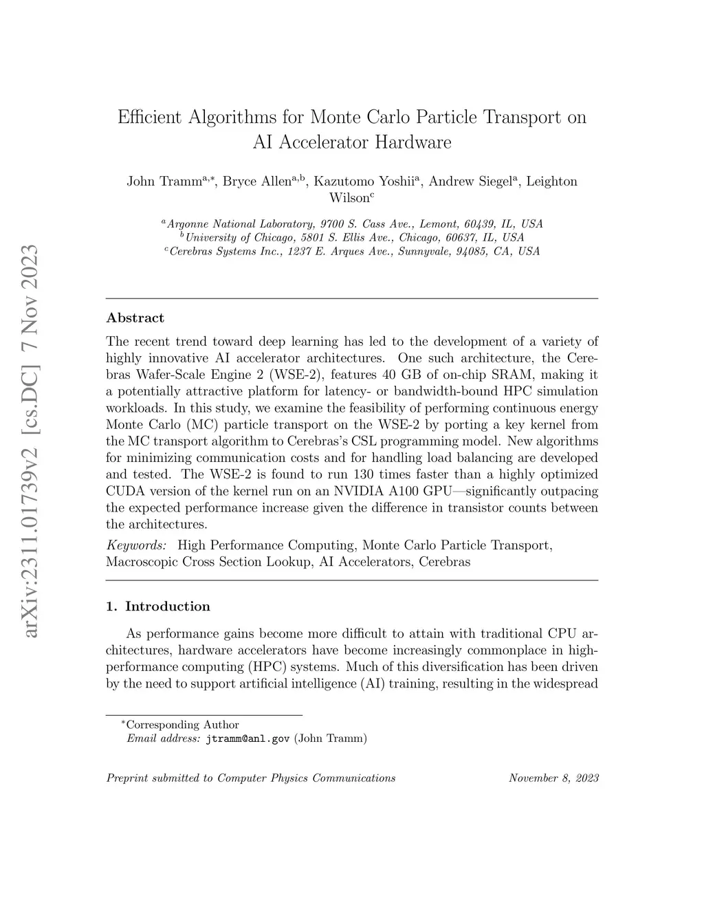 Efficient Algorithms for Monte Carlo Particle Transport on AI