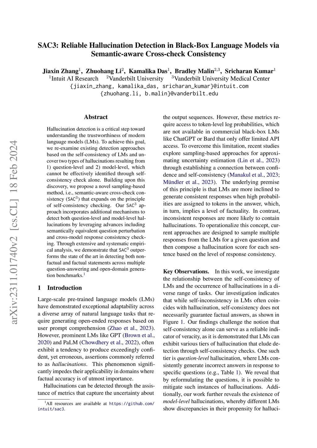 SAC3: Reliable Hallucination Detection in Black-Box Language Models via