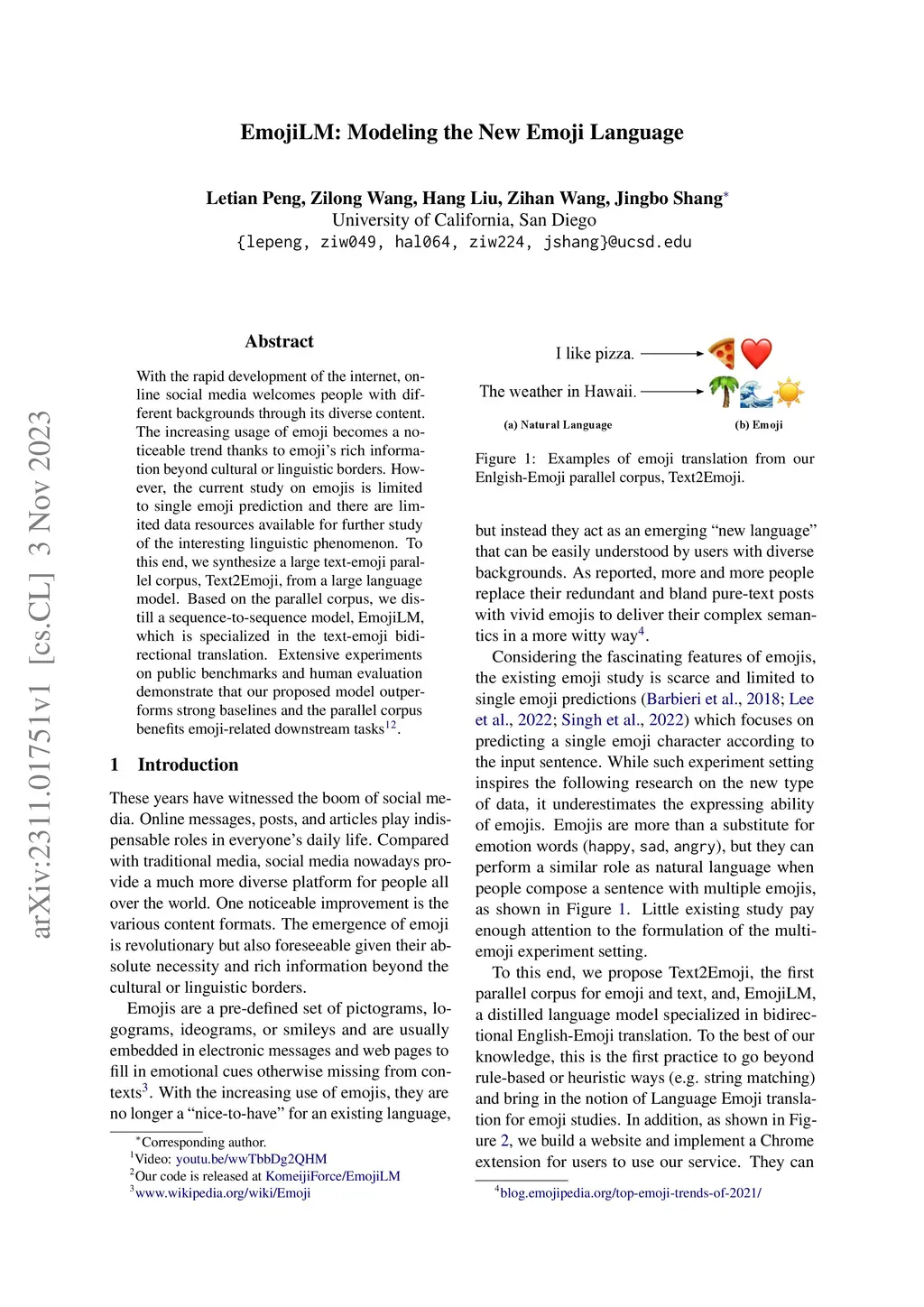 With the rapid development of the internet, online social media welcomes people with different backgrounds through its diverse content. The increasing usage of emoji becomes a noticeable trend thanks to emoji's rich information beyond cultural or linguistic borders. However, the current study on emojis is limited to single emoji prediction and there are limited data resources available for further study of the interesting linguistic phenomenon. To this end, we synthesize a large text-emoji parallel corpus, Text2Emoji, from a large language model. Based on the parallel corpus, we distill a sequence-to-sequence model, EmojiLM, which is specialized in the text-emoji bidirectional translation. Extensive experiments on public benchmarks and human evaluation demonstrate that our proposed model outperforms strong baselines and the parallel corpus benefits emoji-related downstream tasks.