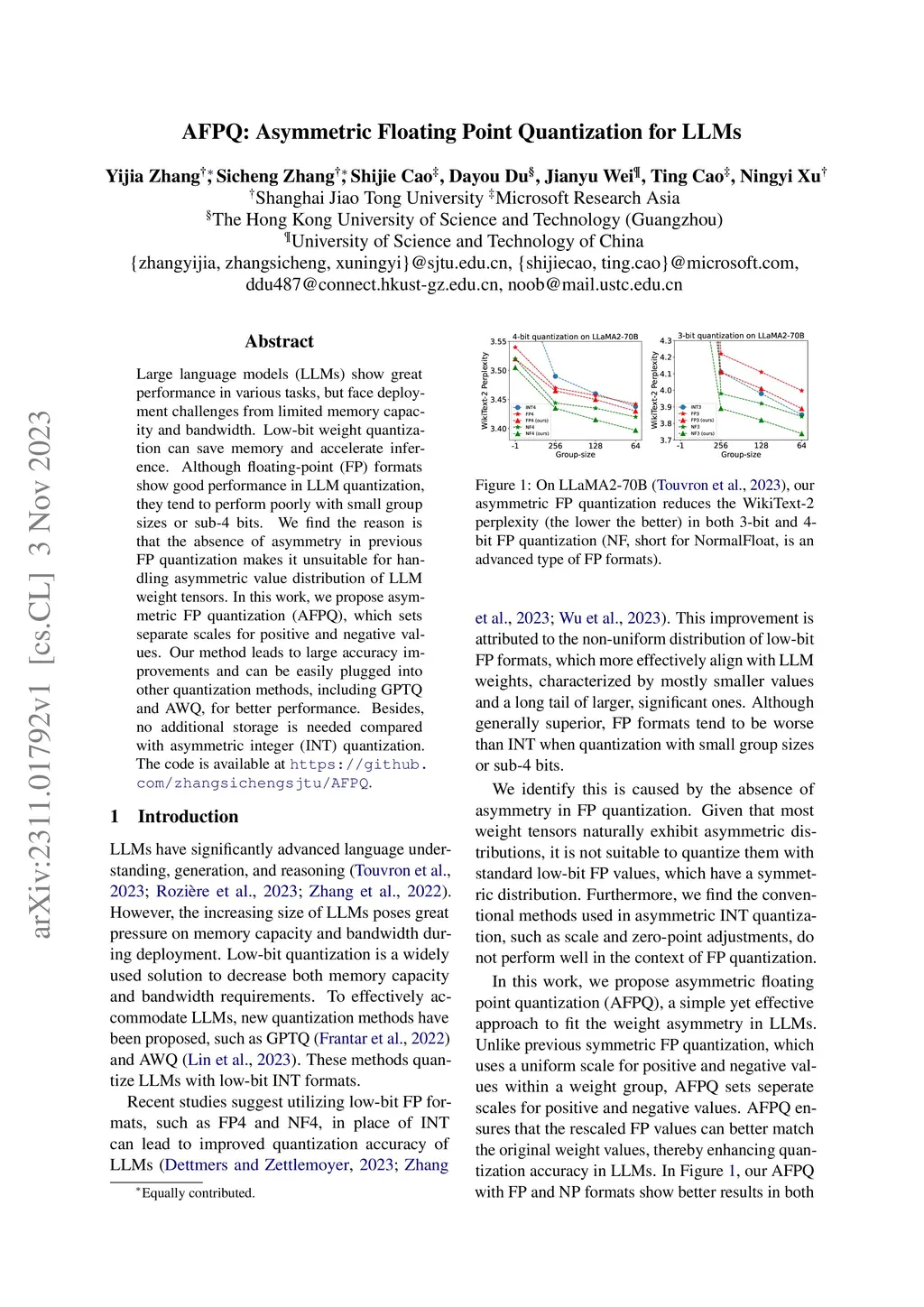 AFPQ: Asymmetric Floating Point Quantization for LLMs