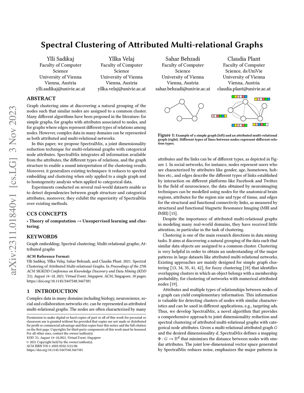 Spectral Clustering of Attributed Multi-relational Graphs
