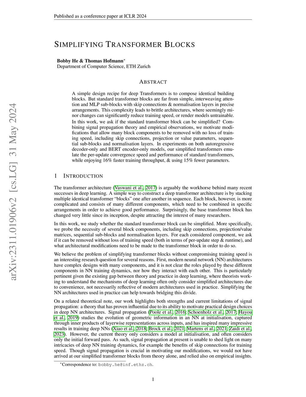 Simplifying Transformer Blocks