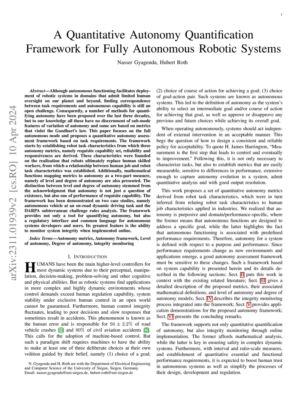 A Quantitative Autonomy Quantification Framework for Fully Autonomous