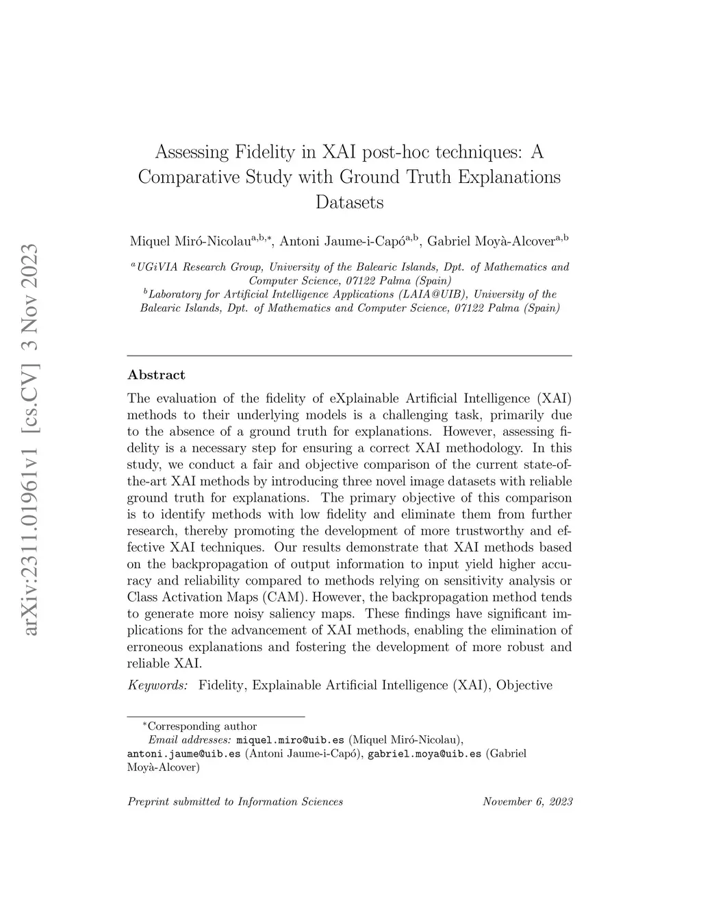 The evaluation of the fidelity of eXplainable Artificial Intelligence (XAI) methods to their underlying models is a challenging task, primarily due to the absence of a ground truth for explanations. However, assessing fidelity is a necessary step for ensuring a correct XAI methodology. In this study, we conduct a fair and objective comparison of the current state-of-the-art XAI methods by introducing three novel image datasets with reliable ground truth for explanations. The primary objective of this comparison is to identify methods with low fidelity and eliminate them from further research, thereby promoting the development of more trustworthy and effective XAI techniques. Our results demonstrate that XAI methods based on the backpropagation of output information to input yield higher accuracy and reliability compared to methods relying on sensitivity analysis or Class Activation Maps (CAM). However, the backpropagation method tends to generate more noisy saliency maps. These findings have significant implications for the advancement of XAI methods, enabling the elimination of erroneous explanations and fostering the development of more robust and reliable XAI.
