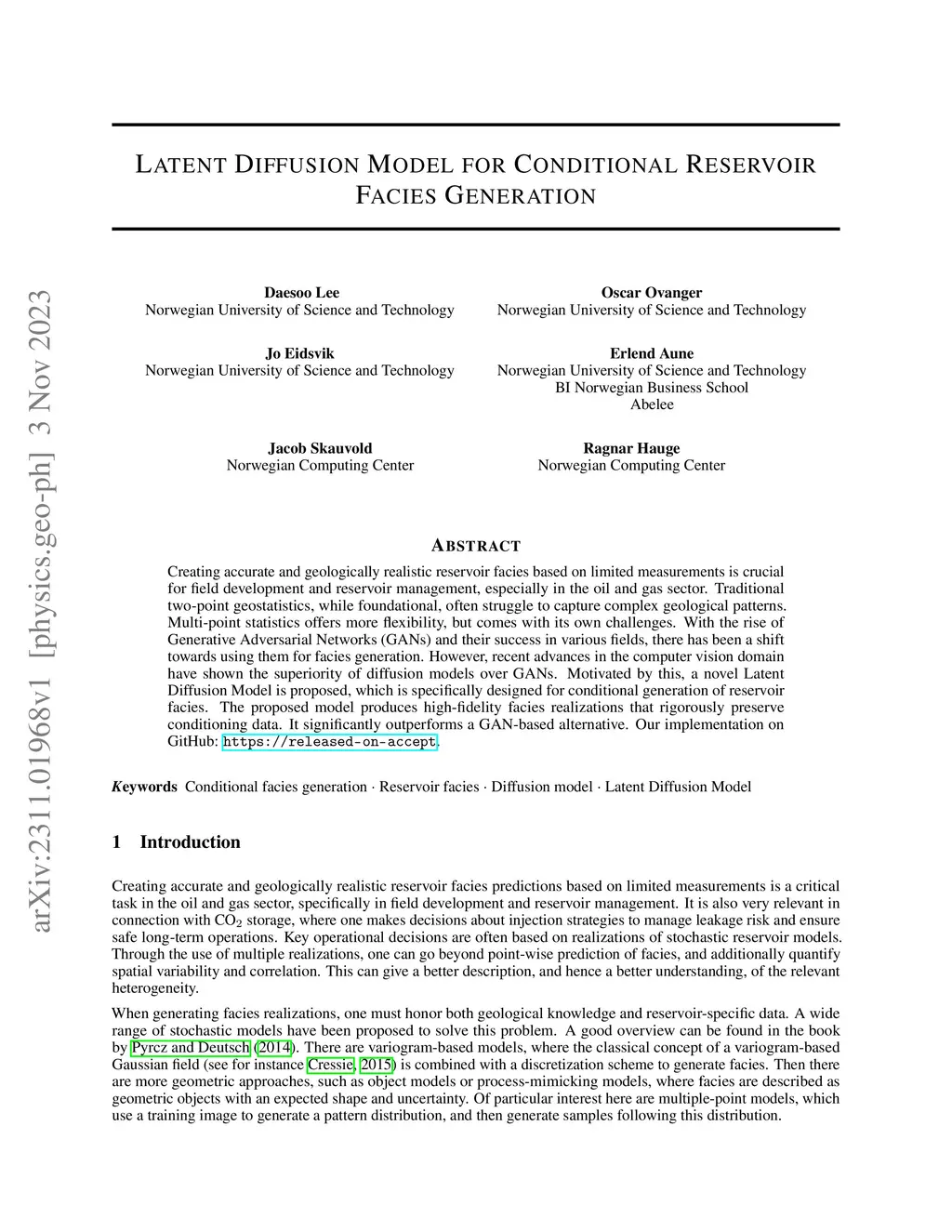 Latent Diffusion Model for Conditional Reservoir Facies Generation