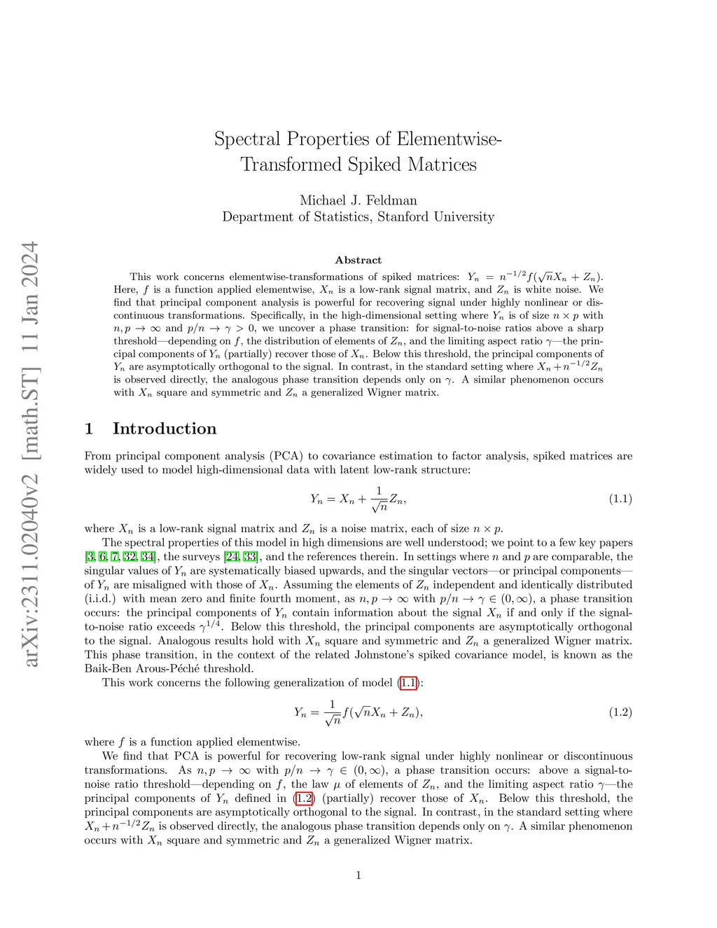 This work concerns elementwise-transformations of spiked matrices: . Here, is a function applied elementwise, is a low-rank signal matrix, is white noise, and is an integer. We find that principal component analysis is powerful for recovering low-rank signal under highly non-linear and discontinuous transformations. Specifically, in the high-dimensional setting where is of size with and , we uncover a phase transition: for signal-to-noise ratios above a sharp threshold -- depending on , the distribution of elements of , and the limiting aspect ratio -- the principal components of (partially) recover those of . Below this threshold, the principal components are asymptotically orthogonal to the signal. In contrast, in the standard setting where is observed directly, the analogous phase transition depends only on . Analogous phenomena occur with square and symmetric and a generalized Wigner matrix.
