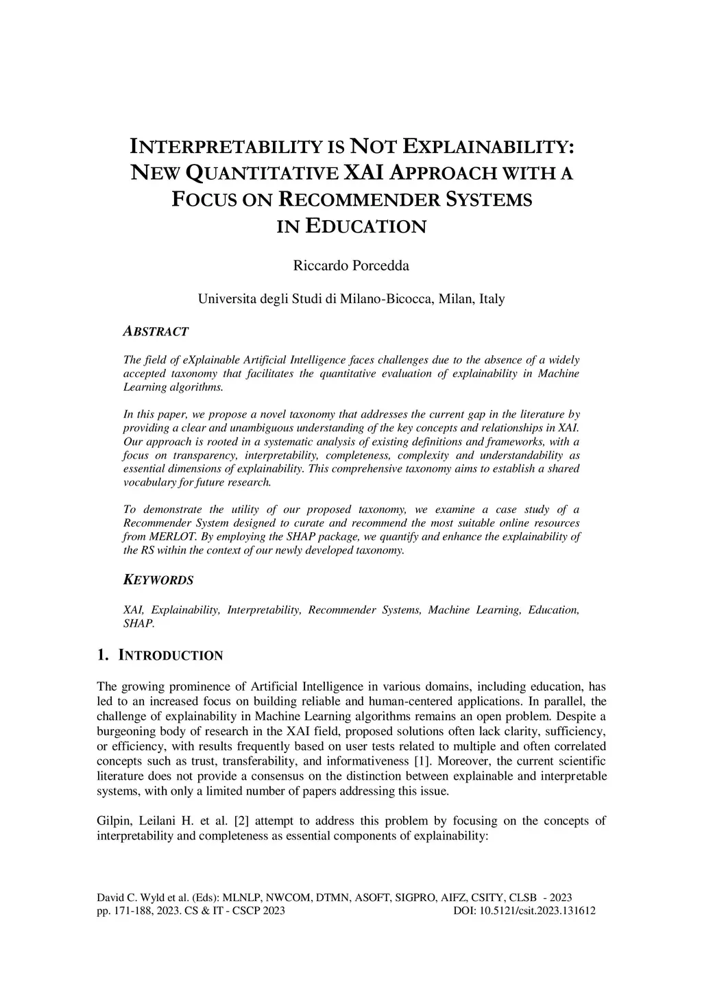 The field of eXplainable Artificial Intelligence faces challenges due to the absence of a widely accepted taxonomy that facilitates the quantitative evaluation of explainability in Machine Learning algorithms. In this paper, we propose a novel taxonomy that addresses the current gap in the literature by providing a clear and unambiguous understanding of the key concepts and relationships in XAI. Our approach is rooted in a systematic analysis of existing definitions and frameworks, with a focus on transparency, interpretability, completeness, complexity and understandability as essential dimensions of explainability. This comprehensive taxonomy aims to establish a shared vocabulary for future research. To demonstrate the utility of our proposed taxonomy, we examine a case study of a Recommender System designed to curate and recommend the most suitable online resources from MERLOT. By employing the SHAP package, we quantify and enhance the explainability of the RS within the context of our newly developed taxonomy.