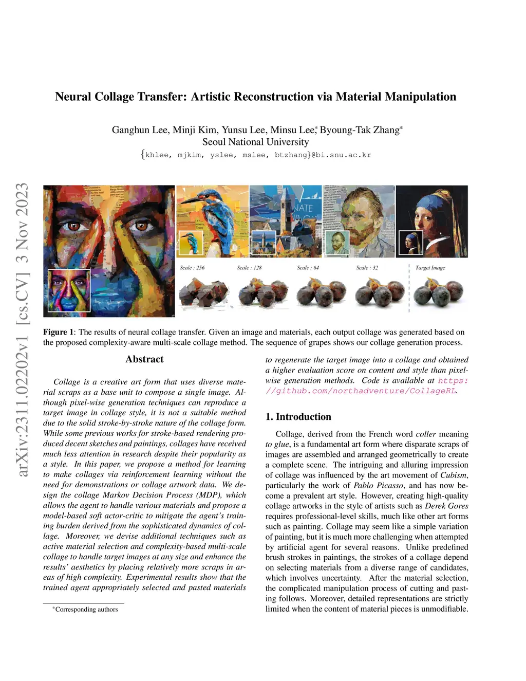 Neural Collage Transfer: Artistic Reconstruction via Material
