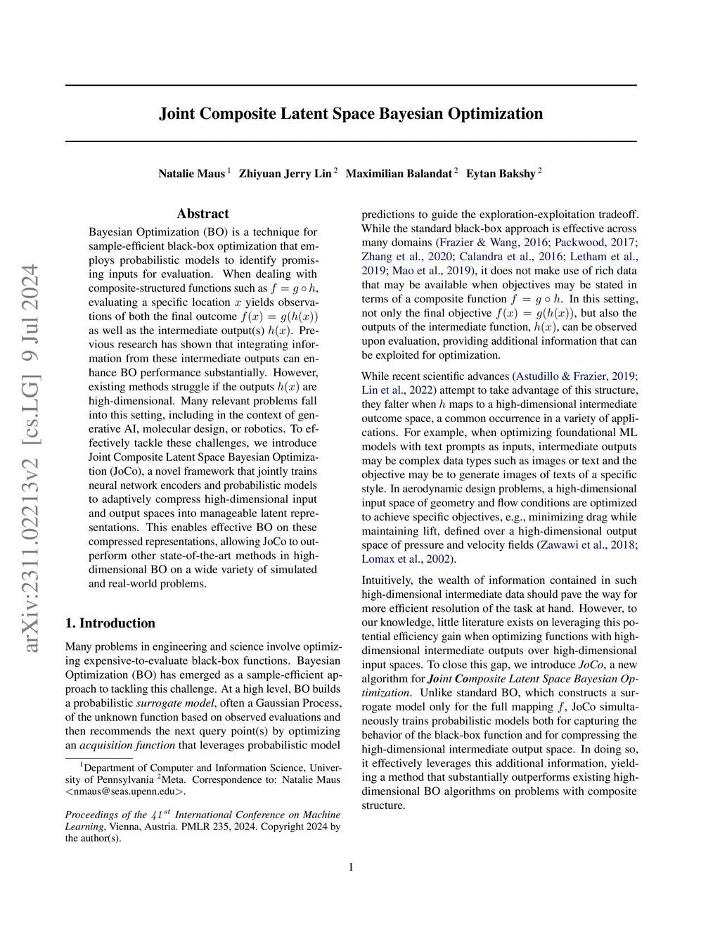 Joint Composite Latent Space Bayesian Optimization
